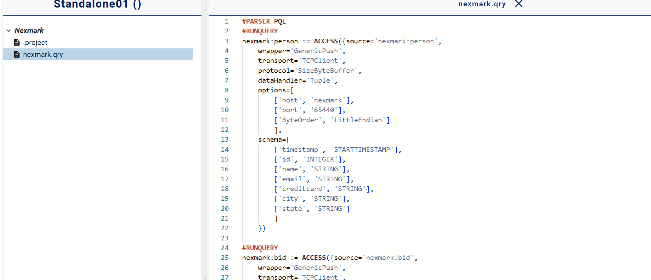 Name the file nexmark.qry