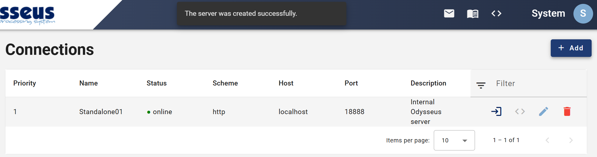 As WebStudio can be used to connect to different Odysseus servers at the same time, the first step is to add new servers under the "Connection" entry.