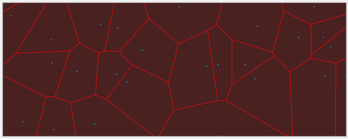 Visual partitioning using a Voronoi diagram. Voronoi diagrams are used in finding clear routes in robot navigation, nearest neighbor queries, and many other applications.