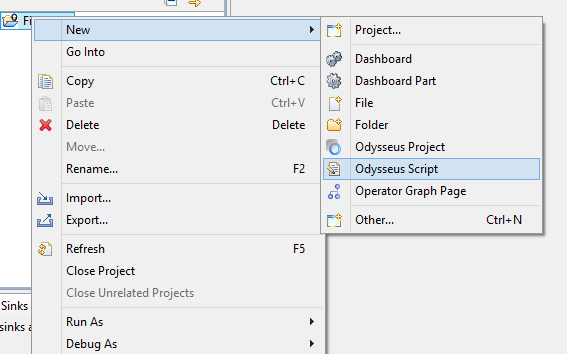 For this, create a new Odysseus Script file named query1 the same way as above.