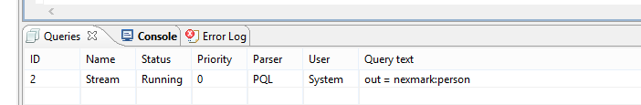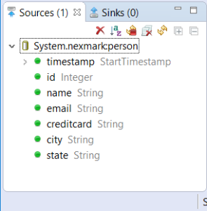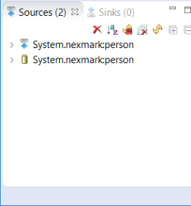The other sources are created the same way. To go further, add the following to the NexmarkSource editor (after the definition of the person source) and execute the script.