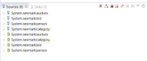 As sources we will use the Nexmark examples source. See Getting Started with Nexmark for the installation of the nexmark server.