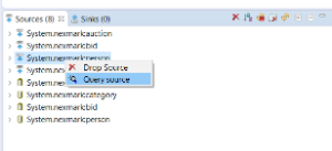 To test, if everthings is connected correctly, right click on System.nexmark:person and choose "Query Source"