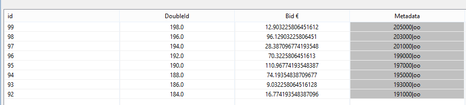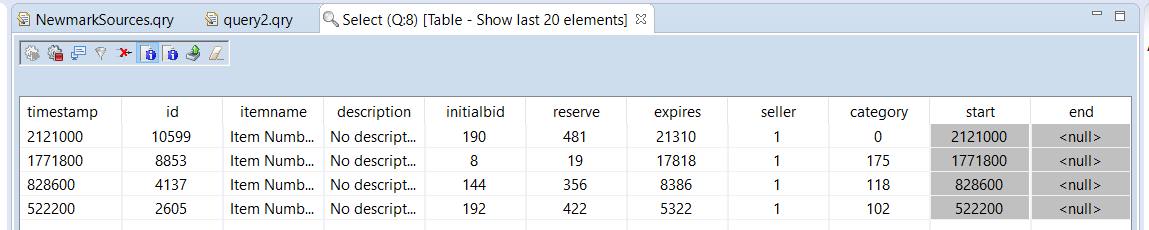 Execute the script and show the output as table. After some time, you should see only auctions opened by the seller with the id 1