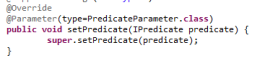 It is also possible to define parameters for the operator. If the operator is annotated with @LogicalOperator, you can define parameters that are also available through PQL. For that, you can use the @Parameter annotation. This annotation is put above a method: