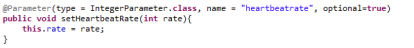 The method itself should be a setter-method, so that it should be normally void and has exactly one parameter (e.g. int rate in the example). The annotation has seven possible values where only one is necessary, the type: