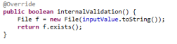 If you need further functionalities, it is possible to override some methods. For example, if you want to validate the input, you can overwrite internalValidateion(). In our example, we can, for example, check whether the file exists or not:
