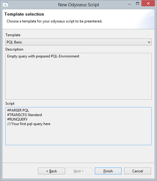 There a different templates that can be used: Choose PQL Basic, and click on Finish.